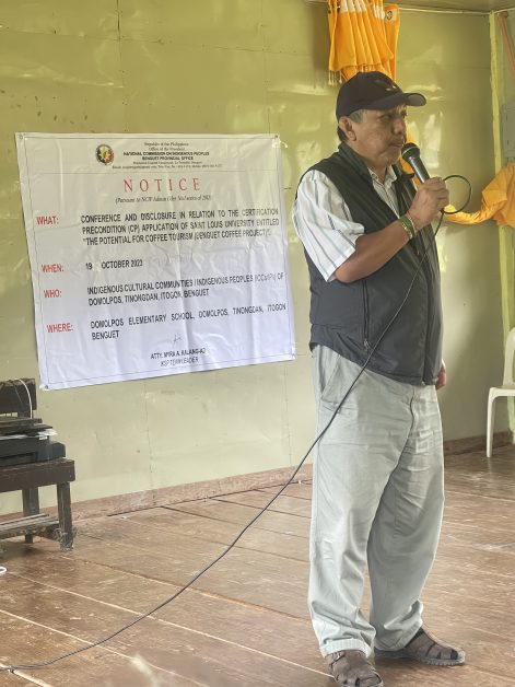 This collaboration, which also aimed to promote community development and engagement, reached a significant milestone. On 9 October 2023, SLU, with the assistance of NCIP representatives, posted a Notice for a Conference and Disclosure in relation to the Certification Precondition (CP) Application of SLU entitled, “The Potential for Coffee Tourism (Benguet Coffee Project)” in Domolpos community.