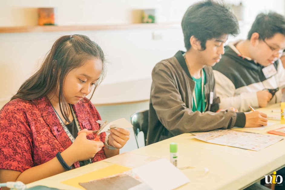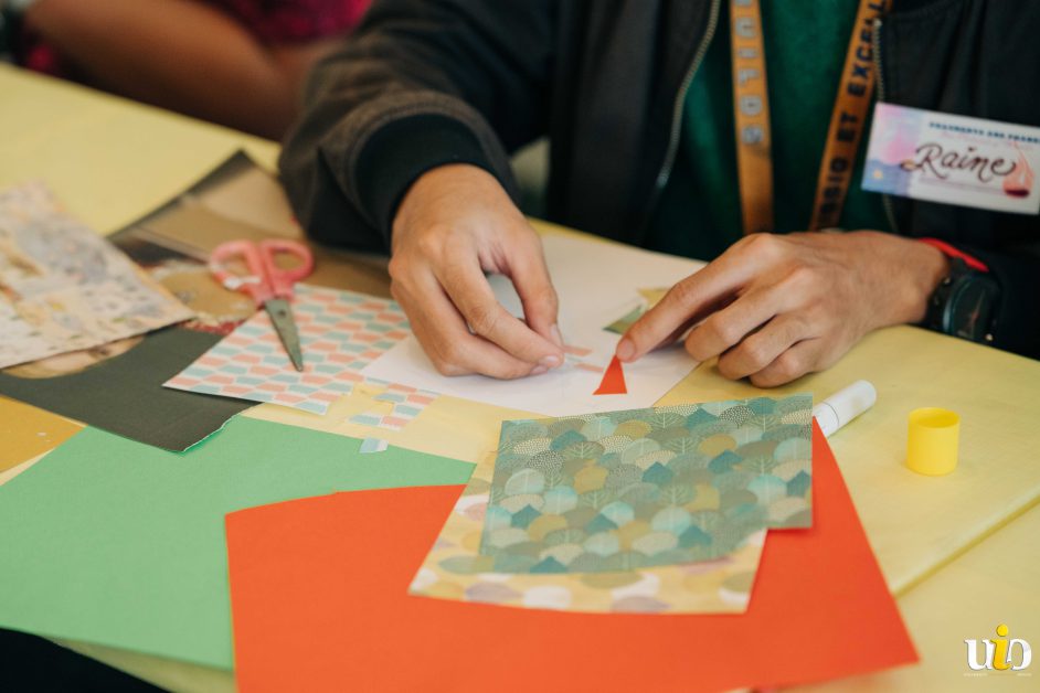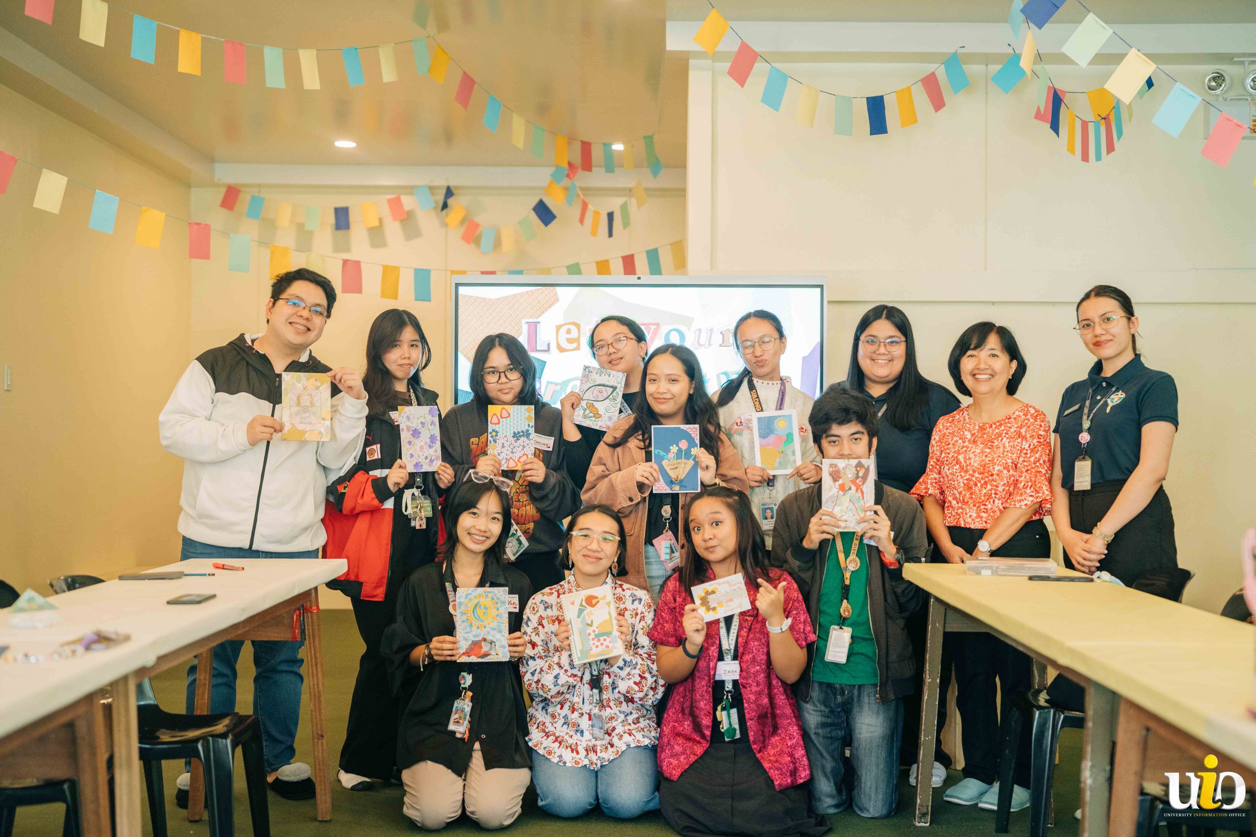 Students were busy designing their postcards while Ms. Taccayan connected with the participants and individually checked up on their work. Throughout the postcard making session, she spoke about channeling emotions better because what you feel reflects in the artistic output. She expressed that as individuals, students should all have the liberty of coming home to themselves through artistic expression.