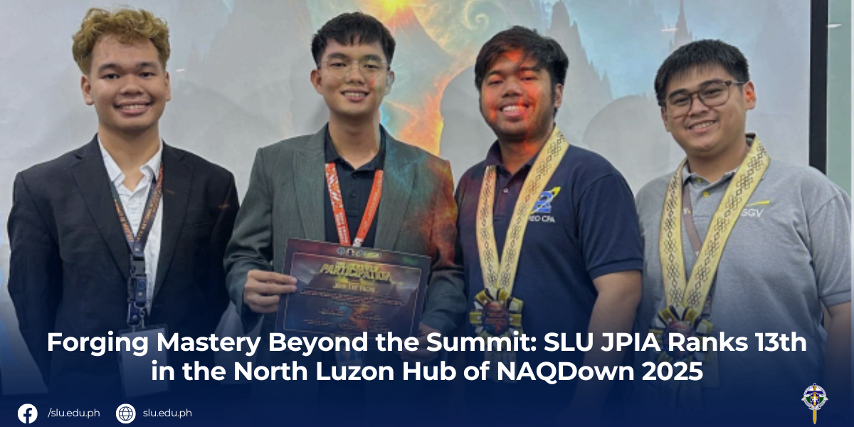 Carrying the banner of JPIA-SLU with pride and purpose, Pacho’s participation reflected the organization’s enduring commitment to Sustainable Development Goal 4: Quality Education, by promoting academic excellence and fostering national-level exposure among accountancy students. His achievement also embodied the CICM’s advocacy for the Integrity of Creation, as it exemplified discipline, ethical conduct, and intellectual growth — values at the heart of holistic formation at Saint Louis University. (Article and Photo from SLU-JPIA)