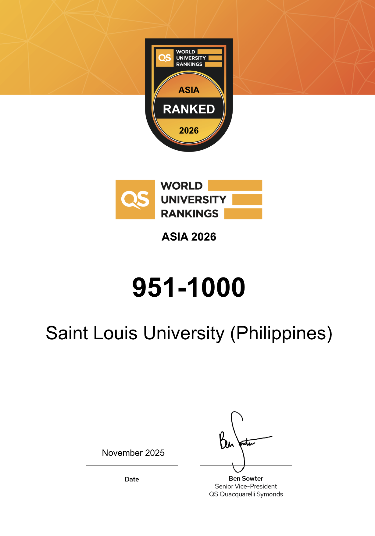 Upholding its commitment to excellence and quality education, Saint Louis University (SLU) has continuously joined the ranks of top universities in Asia as released by the 2026 Quacquarelli Symonds (QS) World University Rankings: Asia on 4 November 2025.
