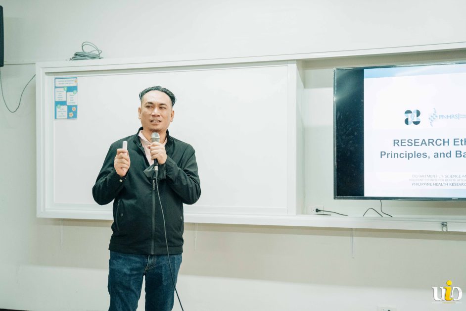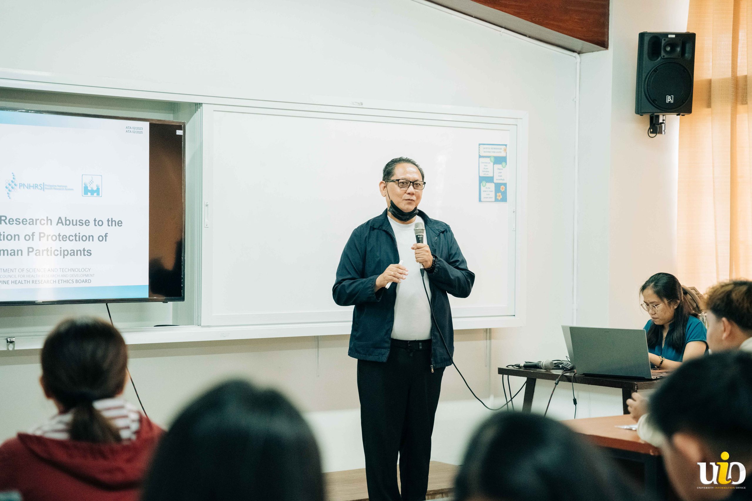 Prof. Ryan Dean T. Sucgang discussed the historical ethical breaches in medical research, leading to the development of ethical guidelines and regulations, focusing on standardizing clinical trials and the evolving nature of research ethics. He highlighted the ultimate goal of research and its various motivations, “The ultimate goal of research is for the betterment of the human condition,” he said.