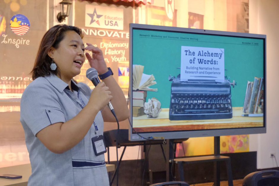 This workshop formed part of the NEOLOUPHIS Theme Research Workshop and Discourse Series, tied with the University Library’s Experience USA and Information Session. The resource speaker, Ms. Kaye Leah Sitchon, delivered a timely and inspiring talk on “The Alchemy of Words: Building Narrative from Research and Experience.” Her insights resonated with the theme, emphasizing the transformative power of words in bridging research and creative expression.