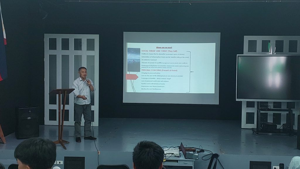 Complementing this discussion, Prof. Placido presented his lecture, “Reflections on a Resilient, Empowered Youth of Today through the Lens of Stoic and Heideggerian Spirit.” His talk provided a nuanced exploration of the concept of resiliency, integrating insights from both Stoic philosophy and Heideggerian existential thought. He clarified that resilience does not mean passive acceptance or surrender to circumstances. Instead, it embodies an active stance—an empowered response to challenges that motivates individuals to create action and transformation.