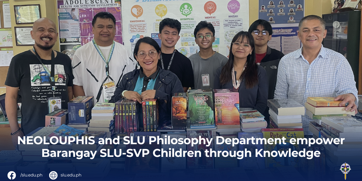 Led by officers Anton Lawrence Ponce, Jonah Gabrielle Mones, and Philip Lawrence Pioquinto, with Mr. Dennis Placido of the Philosophy Department, the society donated two boxes of books for the barangay’s library and daycare center serving thirty-one children. The donation, received by Hon. Imelda Tess Anen Tibalao and council members Ronald Rabara and Ricky Antonio, supports the barangay’s initiatives for child protection and development, reflecting SLU’s values of Christian spirit, excellence, and service.