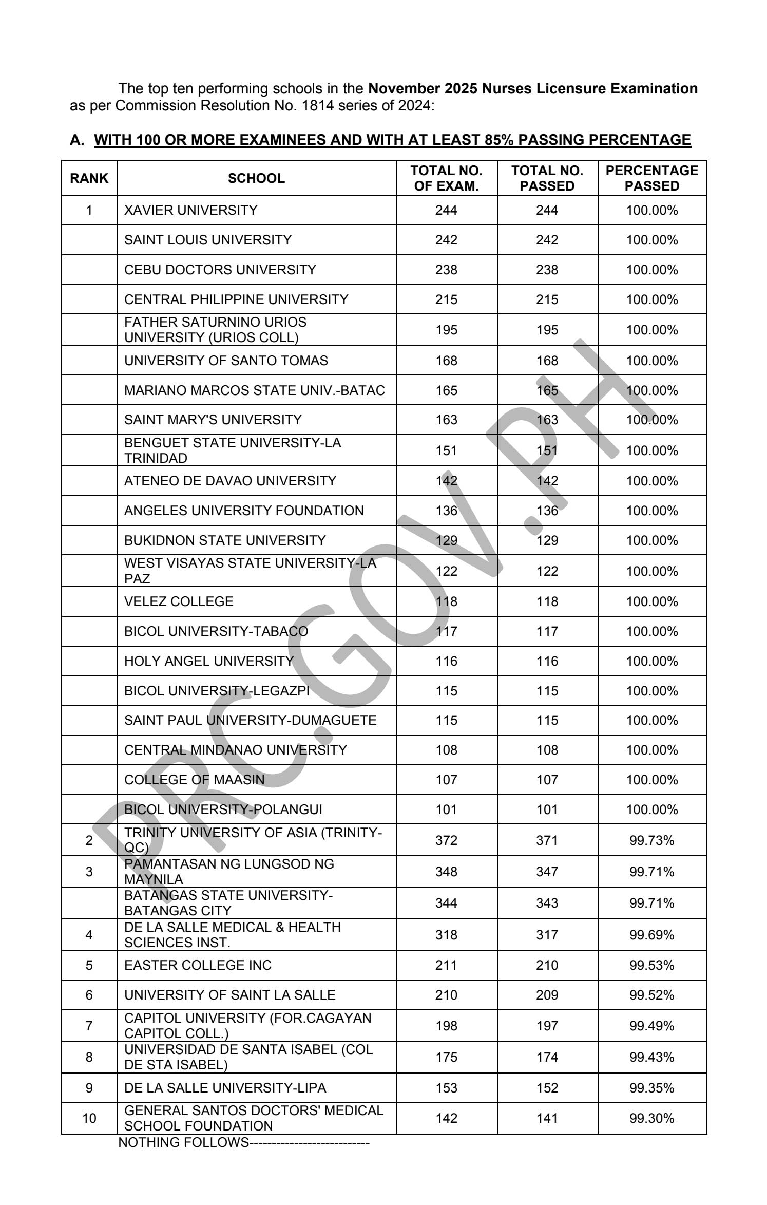 Furthermore, 40,692 out of 45,192 (90.04%) passed the Nurses Licensure Examination given by the Board of Nursing in 21 Testing Centers all over the Philippines this November 2025.
