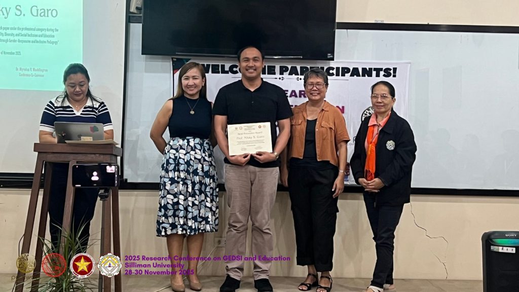 Researchers from the Saint Louis University New Louisian Philosophical Society (NEOLOUPHIS) celebrated landmark achievements as its adviser, Mr. Nikky Garo, was awarded Best Presenter at the Research Conference on Gender Equality, Diversity, and Social Inclusion in Education, held last 28-30 November 2025, in Dumaguete City, Negros Oriental.