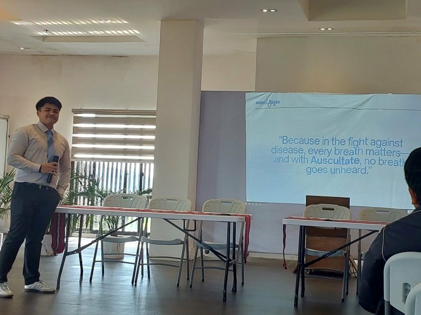 Guest startups were given the opportunity to present their innovations to the audience – products such as GROUNDED: Grounds for Environmental Detoxification, TASARAP: an edible cup, and THREADitION: a plasma-based wastewater treatment. One of them was SLU’s The Last Se7en, a group of BSCS students from SAMCIS who developed Auscultate – an AI-powered clinical decision support tool to help healthcare professionals diagnose lung diseases solely based on lung sounds. The same group won 1st runner-up in the 10th Philippine Start-up Challenge held last December 2025. They were accompanied by their research promoter, Josephine S. Dela Cruz, PhD.
