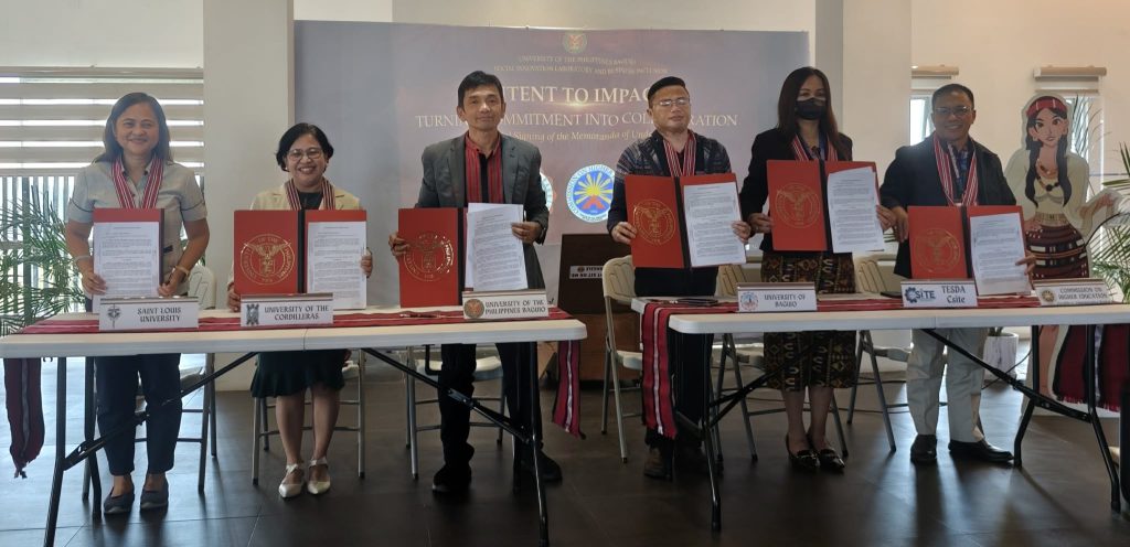 Saint Louis University (SLU), through the Research, Innovation, and Sustainable Extension (RISE) Center, signed a Memorandum of Understanding (MOU) with the University of the Philippines Baguio to formalize a collaboration in innovation. UP Baguio’s innovation hub, aptly known as UP SILBI: Social Innovation Laboratory and Business Inclusion, spearheaded this event. The MOU aims to create a partnership to jointly develop capacity-building activities, foster collaboration, support startups, and facilitate knowledge sharing. This aims to strengthen the city’s start-up ecosystem and further intends to pool resources from several partner educational institutions, industry, and the LGU.