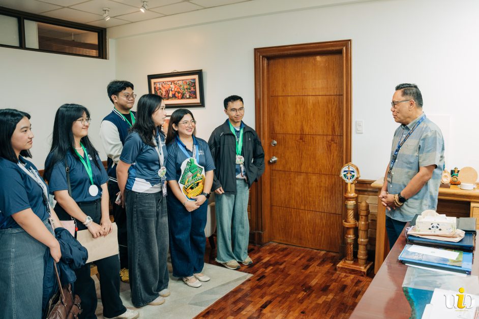 On 19 February 2026, White & Blue paid a courtesy call on Rev. Fr. Gilbert B. Sales, CICM, PhD, SLU President, with the region’s Highest Individual Top Scorer, Rouize Pancho who garnered first place in the Editorial Cartooning (Digital), Literary Graphics (Digital), and Comic Strip (Digital) categories.