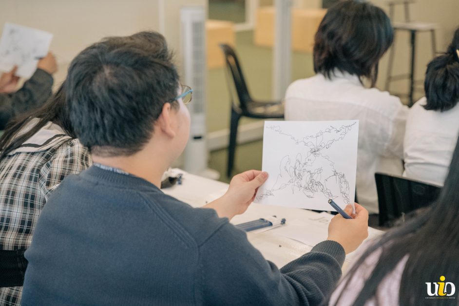 Halfway through the activity, Ar. Munar impressed the students by showing an art machine he built, named ‘Harry’. Harry is a small machine that was specifically made for doodling. A pen was attached to it, and its battery-powered limbs would move the pen randomly in a canvas. Throughout the workshop, he checked on the students’ works individually, offering tips and advice on how to improve their drawing skills in general.