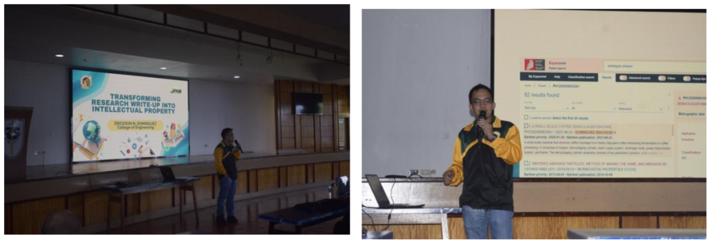 Participants were also introduced to practical search tools for conducting prior art searches, including Espacenet and Google Patents, with the help of Engr. Dominguez. He emphasized that a lower volume of existing technologies related to the invention is generally more favorable, as it suggests fewer competing claims in that technological space.