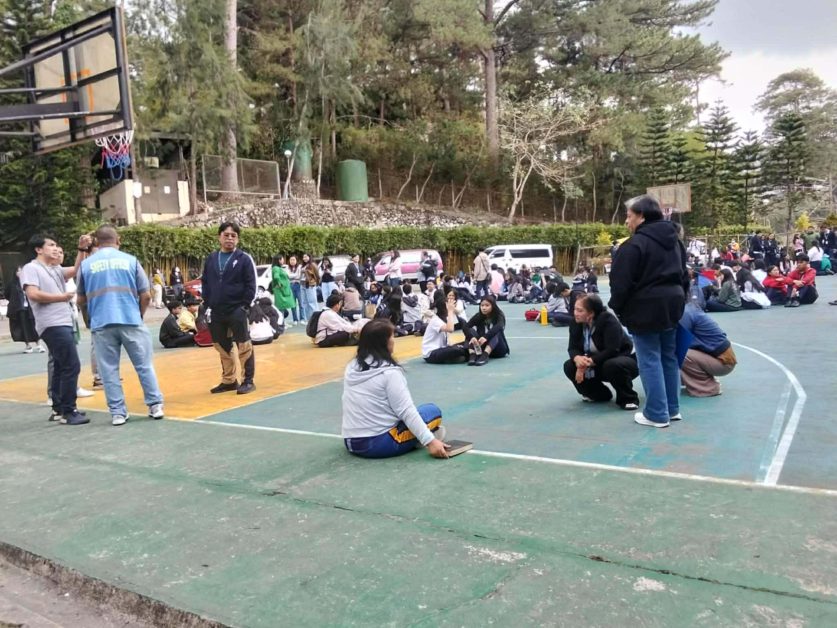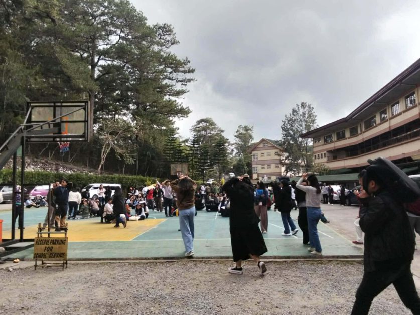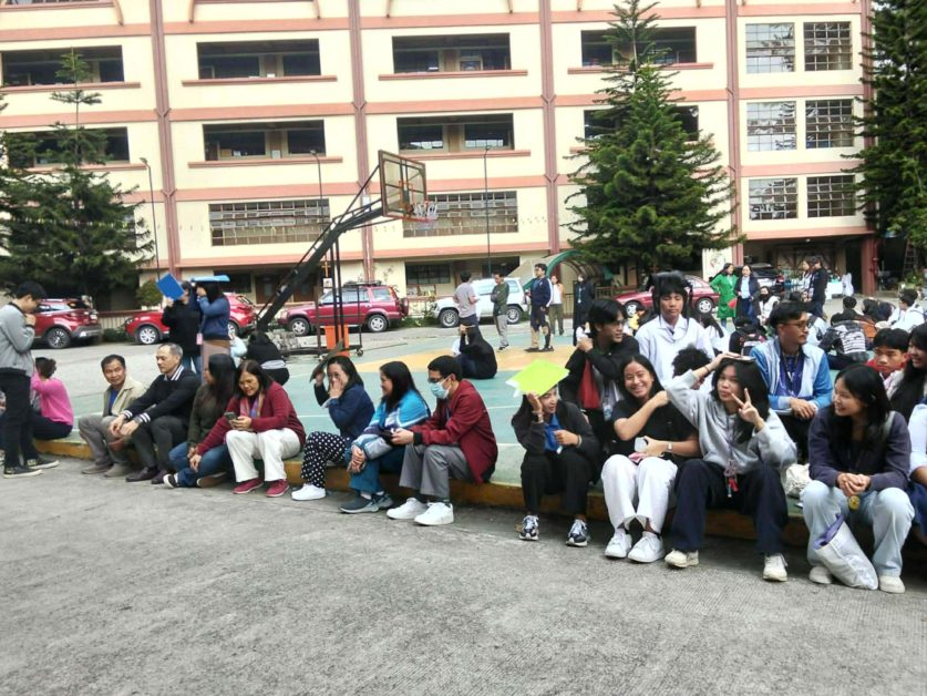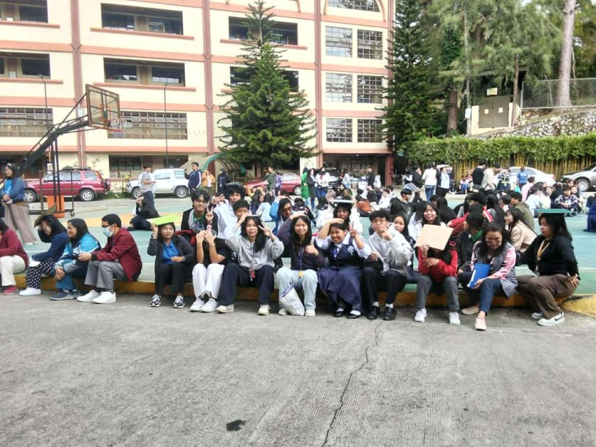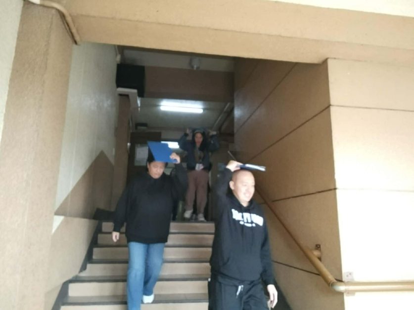 After the 30-second emergency horn came the next three long bells, signifying the evacuation process. During this process, the participants were instructed to stay calm until the end. They grabbed available objects to protect their heads and went to their respective evacuation areas. Thereafter, a headcount was conducted for each room to determine whether there are missing persons and to assess their safety.