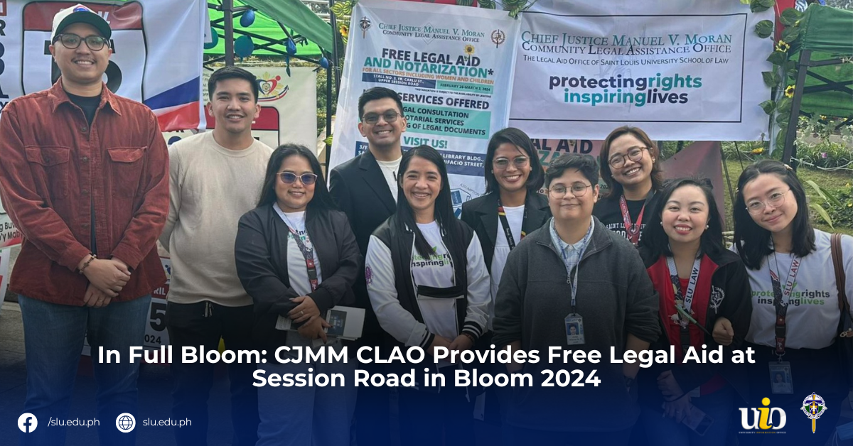 DetailsThe Chief Justice Manuel V. Moran Community Legal Assistance Office (CJMM CLAO) conducted a Free Legal Aid and Notarization last 26 February to 2 March 2024, during Session Road in Bloom 2024. Through its Law Student Practitioners (LSPs) who rendered services under the supervision of their Supervising Lawyers (SLs), the CJMM CLAO gave legal advice and offered free notarization to locals and tourists alike, extending its community work to a total of 112 clients.